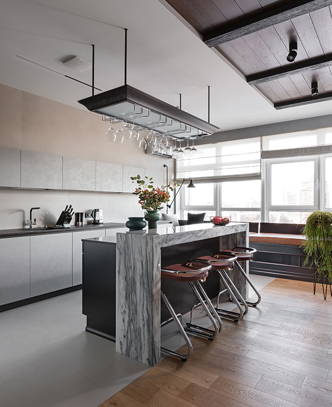 Клиент — большой поклонник современных технологий, поэтому в квартире все автоматизировано: от регулировки штор на пульте управления до подогрева полов.