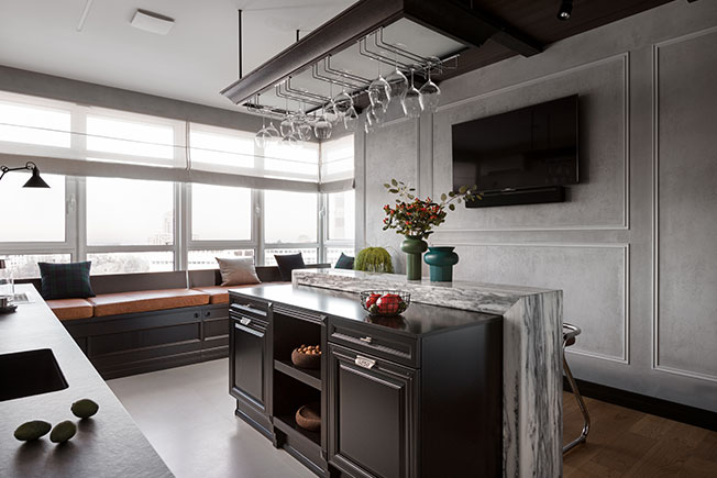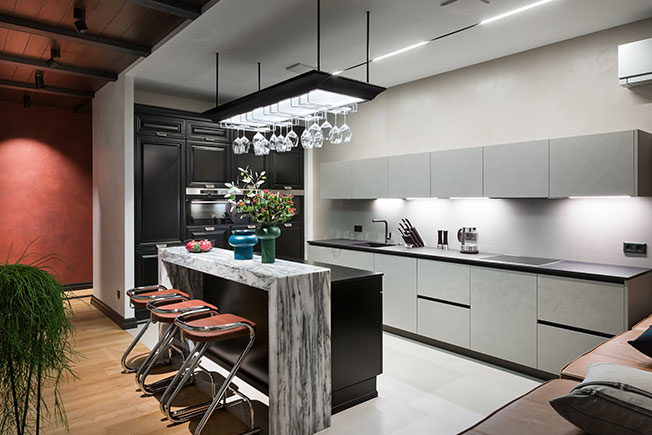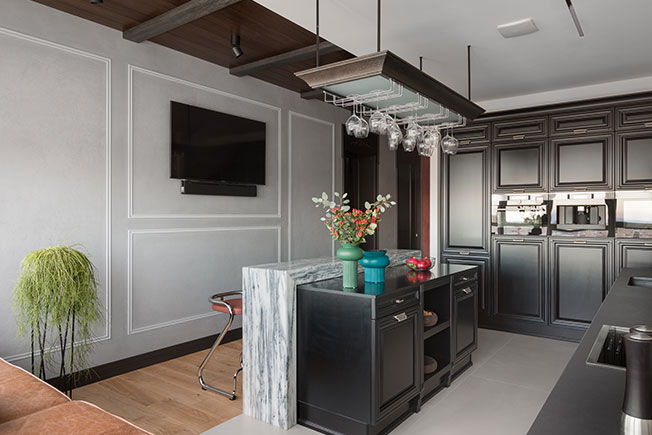 Дизайнер Виктория Витковская и декоратор Анастасия Соколова (V. Concept Design Studio) оформили квартиру площадью 153 кв. метра в Киеве для любителя вин. Интерьер стал полным отражением личности хозяина — консервативные взгляды, семейные традиции, но в то же время мужественность и яркий темперамент.