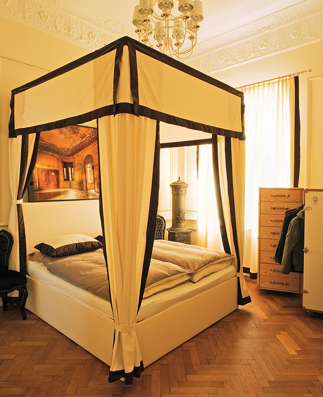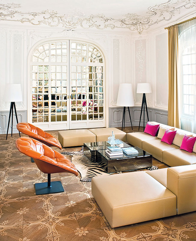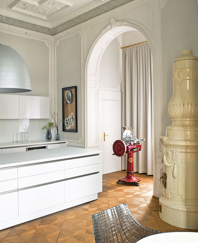 В конце XIX века особняк принадлежал семье барона Гутмана. Помещения, которые я сегодня занимаю, использовались для балов и лекций. В гостиной располагался танцевальный зал. Из-за того что на этом этаже только праздновали, здесь не было ванных комнат. Оборудовать их оказалось самым сложным в проекте. Но мы и это сделали. Поскольку я уже 20 лет имею дело со старым фондом, у меня сложилась команда специалистов, которая справилась с грандиозным объемом за три месяца».