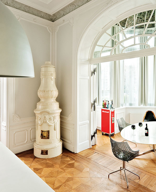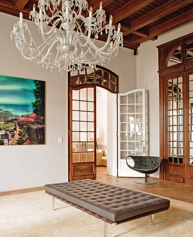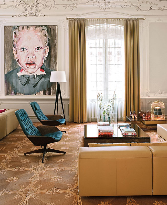 Каждый раз, когда он возвращается домой, то заново, как в первый раз, изумляется красоте этих комнат: их простору, элегантности, пятиметровой высоте, богатой лепнине и паркету с интарсией. Реза Аккерман и его команда провели реставрацию на профессиональном уровне.