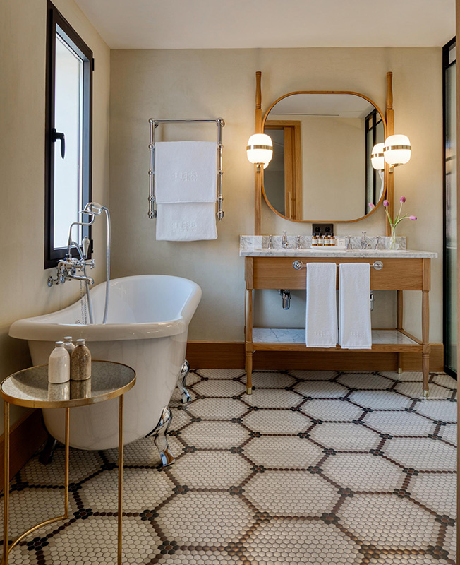 Ласаро Роса-Виолан — один из первых, кто заговорил о кастильском стиле с его кованной мебелью, керамической плиткой и решетчатыми дверями. В отеле чувствуется уважение к Мадриду, который так поразил когда-то дизайнера. Хотя все бабушкины вещи в Bless — стилизация, романтические детали, которые просто помогают лучше понять город.