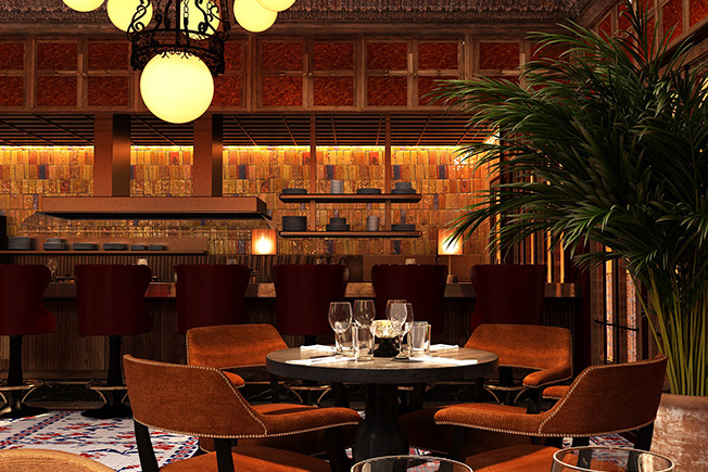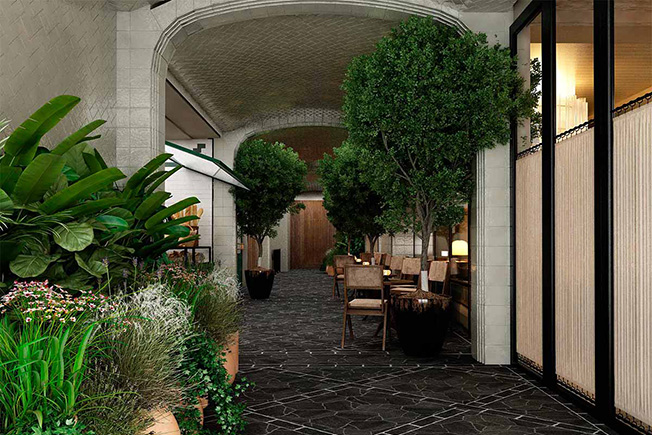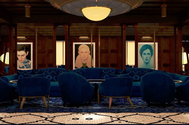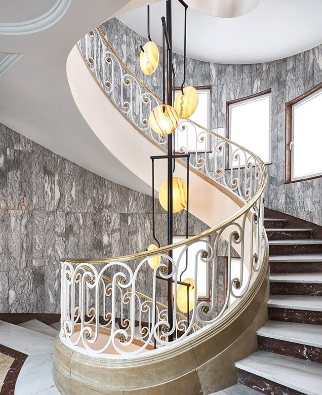 Детали и архитектурные элементы — от большой мраморной лестницы и стеклянного купола до настенных росписей со сценами охоты и буколическими пейзажами прекрасно передают ощущение места — отсылая к Мадриду XIX века.