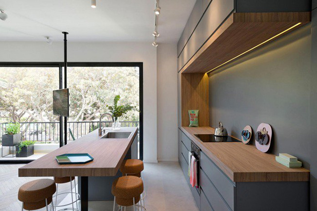 Трехкомнатная квартира в оживленном жилом районе Тель-Авива площадью 55 кв. метров превращена в жилье со современной планировкой, эргономичное и комфортное. Усилиями студии Maayan Zusman Interior Design практически все здесь, вплоть до кухонной мебели, изготовлено самими дизайнерами.