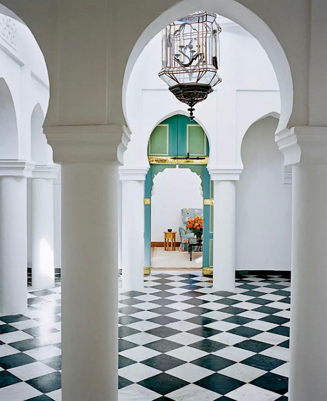 Сен-Лоран и Берже купили виллу в 90-х, доверив ее украшение Жаку Гранжу, французскому дизайнеру, в числе клиентов которого были Ален Дюкасс и Палома Пикассо. Важным украшением дома Сен-Лорана и Берже в Танжере стал красочный ситец с птицами, деревьями, фруктами и бабочками.