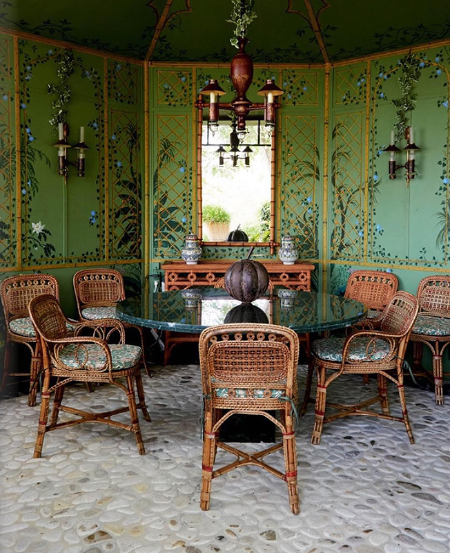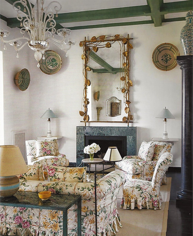 Долгое время считавшейся визитной карточкой аристократических домов Европы, ситец во второй половине XX века стал эмблемой провинциального загородного дома. Часто сопровождаемый вышитыми подушками, фарфоровыми безделушками и кружевами, избыточный декор был на вилле оставлен, предоставляя контраст для современного стиля.