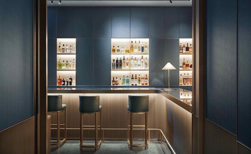 Ремонт выполнен на основе тщательно продуманных фирменных кодов Джорджо Армани — приглушенной палитры, чистых линий, добротных материалов. Дизайн объединенного кафе и ресторана выстроен вокруг «ленты» из бледного золота, которая разворачивается от начала и до конца: начиная с лакированной деревянной стойки, она ведет к кафе, в ресторан и поднимается по большой винтовой лестнице на второй этаж.
