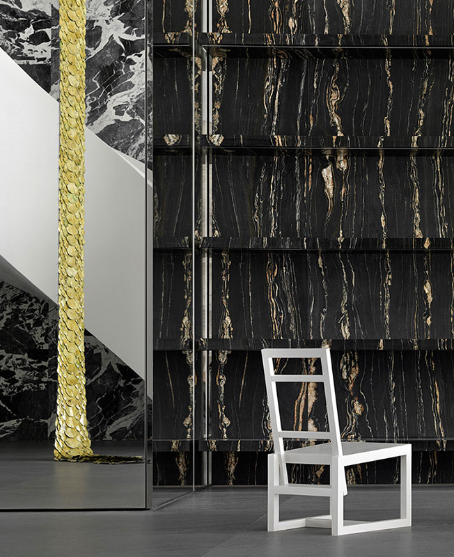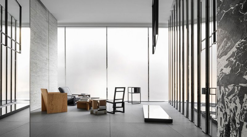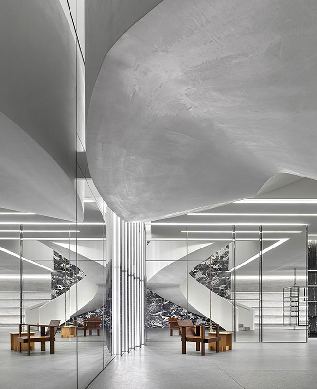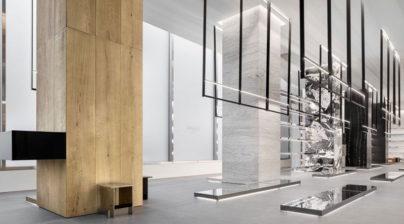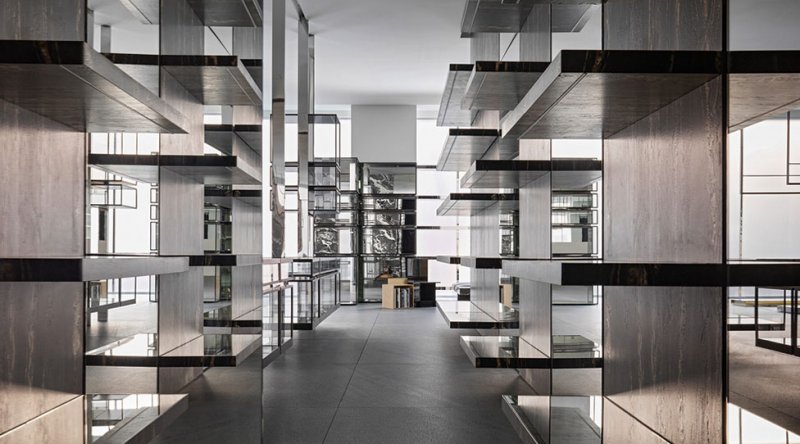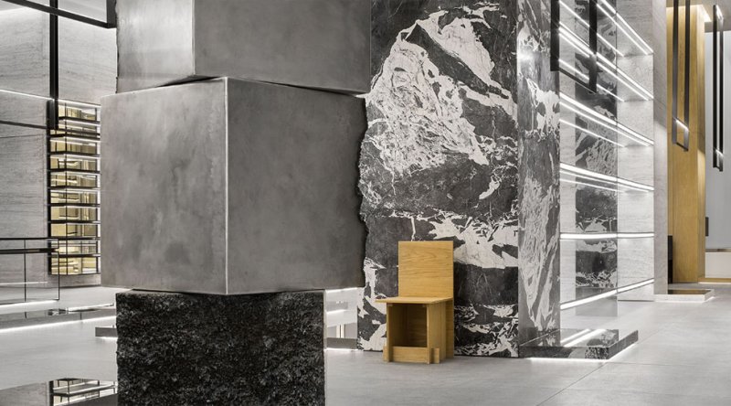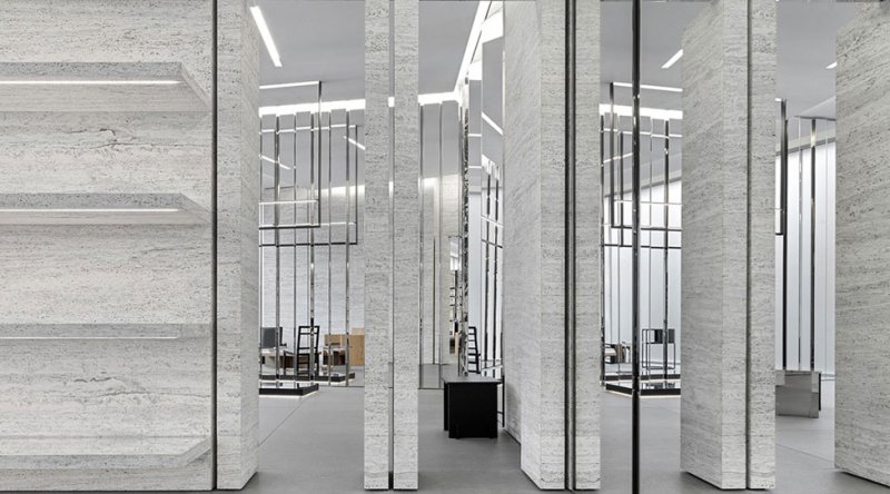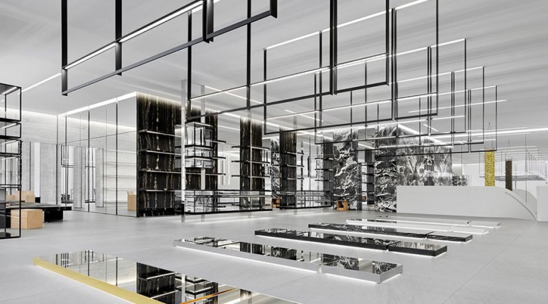 Уникальным видением дизайнера пронизаны интерьеры всех магазинов — преобладает сочетание природного камня, мрамора, зеркал, полированной стали и фактурного бетона.