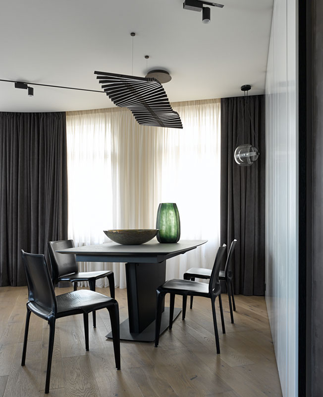 «Интерьер создавался для пары с двумя повзрослевшими детьми. Нам очень повезло с заказчиками — приятные и отзывчивые люди, они с большим уважением относятся к работе архитекторов и дизайнеров. Глобальной перепланировки не потребовалось, была лишь небольшая корректировка. Например, мы перенесли кухню и объединили ее с гостиной.