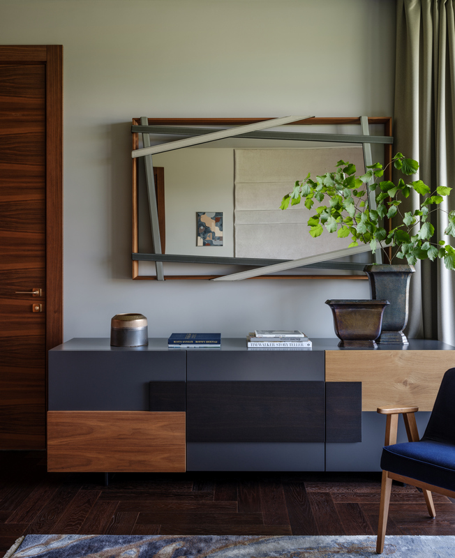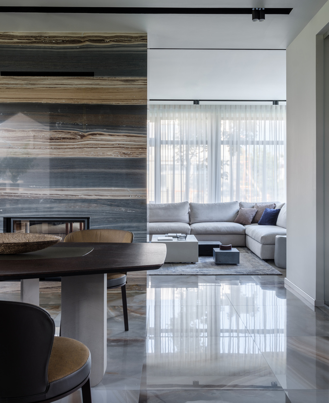 Юлия не хотела перегружать пространство мебелью, хотела сохранить ощущение воздуха в интерьере, поэтому все предметы предельно функциональны. Например, двусторонний камин, любоваться которым можно как из гостиной, так и столовой.