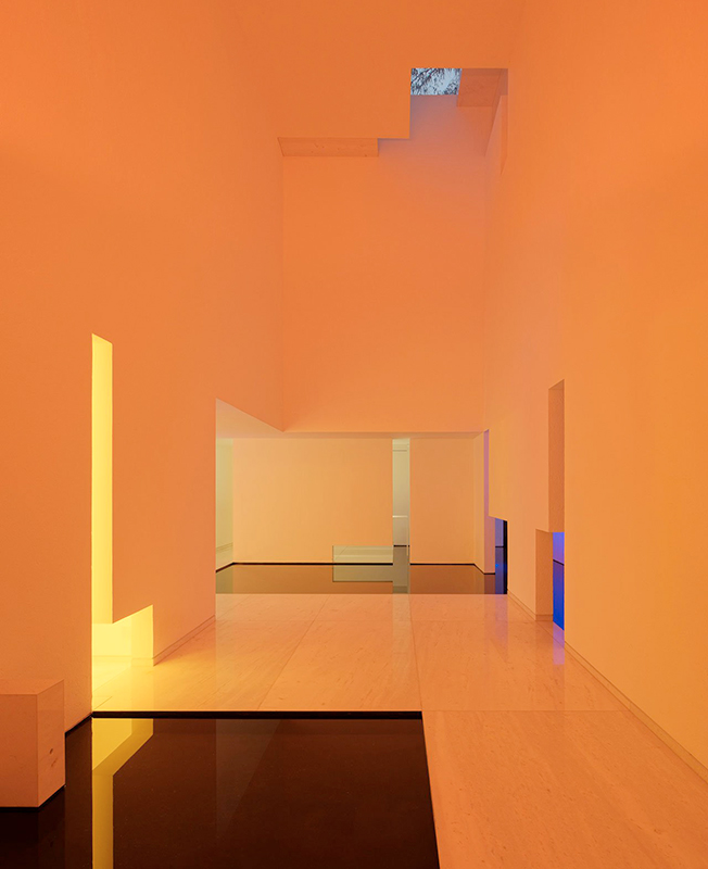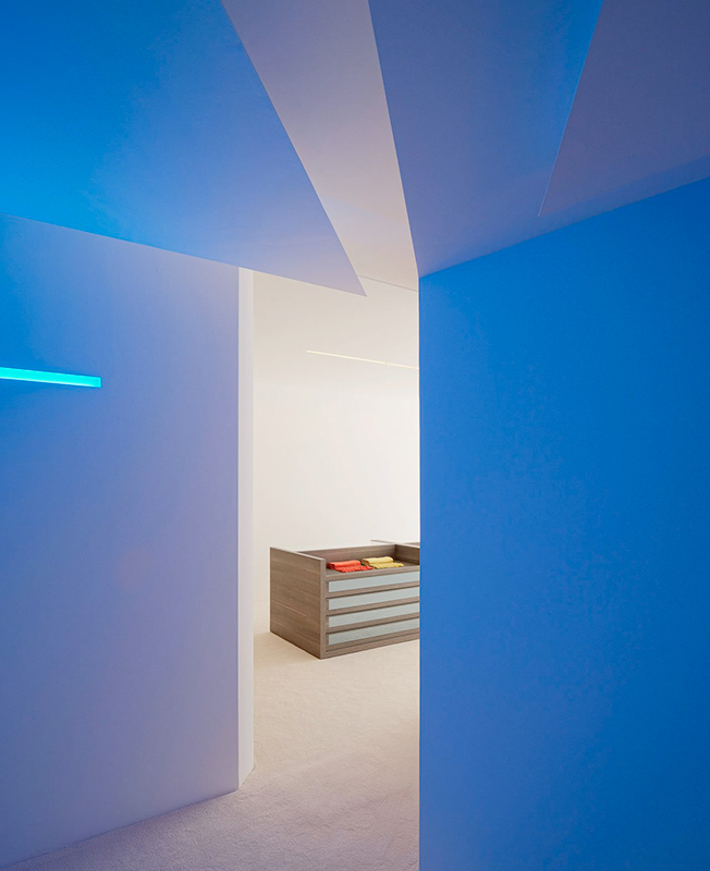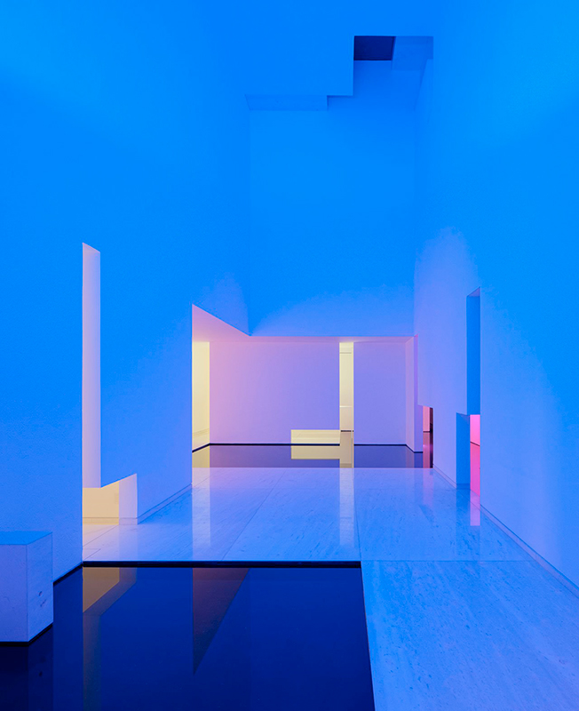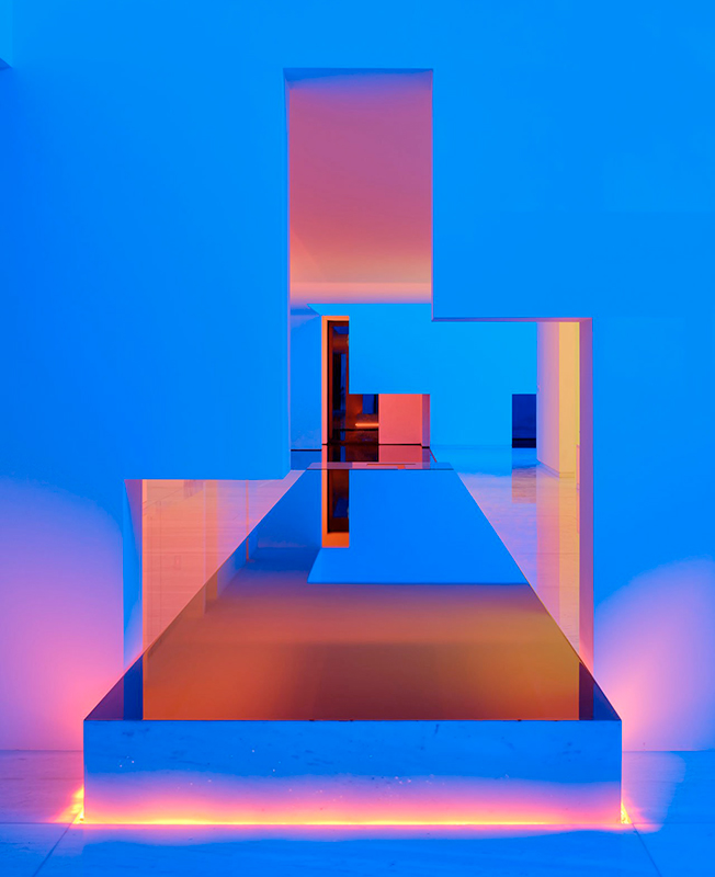 С наступлением ночи беложнежные пространства оживают, превращаясь в трехмерные полотна неоновых цветов, которые гармонично переходят один в другой. Согласно замыслу автора, это позволяет переосмыслить минималистские постройки, вновь популярные сегодня, но зачастую кажущиеся стерильными и однообразными.