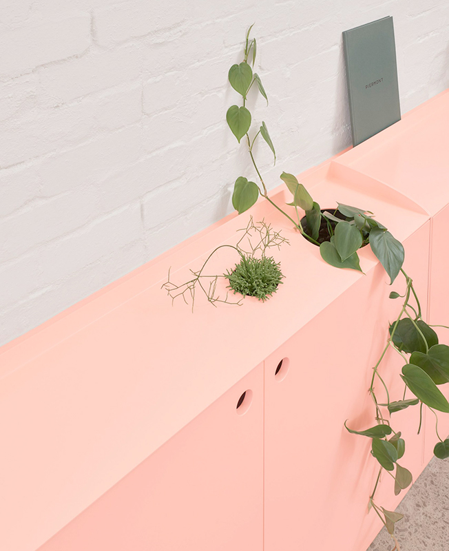 Выбор каждого оттенка был продиктован количеством дневного света: у входа, где света больше всего, тон самый темный и насыщенный, а в глубине офиса, где расположена обеденная и кухонная зона для работников, он светлее. «Наше решение исследовать палитру градуированных оттенков — это отсылка к аккаунту Earl St в Instagram, где постоянно используется градация цвета от изображения к изображению», — комментируют архитекторы.