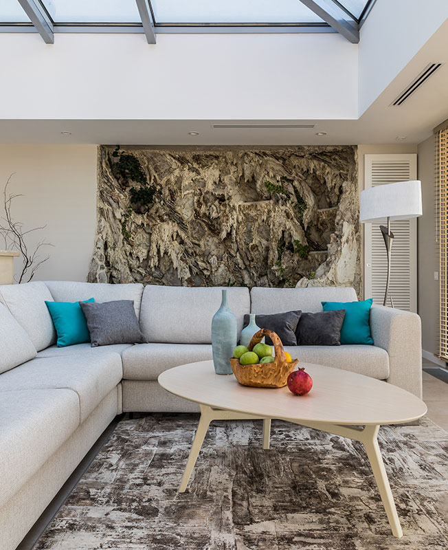 «Мы реализовали вариант, который напрашивался самым естественным образом. В помещении разместили компактный бар, большой обеденный стол для приема гостей, мягкий диван для отдыха и общения. В павильоне спроектировали каскадный водопад из натурального камня, который ссылается на природные особенности региона и делает весь интерьер ближе к природе, а атмосферу в зоне отдыха еще более расслабляющей», — рассказывает о проекте Елена.