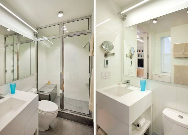Если у Вас разделенный санузел, советуем демонтировать стену. Стоимость ремонтных работ незначительно возрастет, но Вы сможете приобрести еще 40 сантиметров. А это ощутимо, не правда ли?