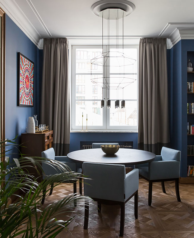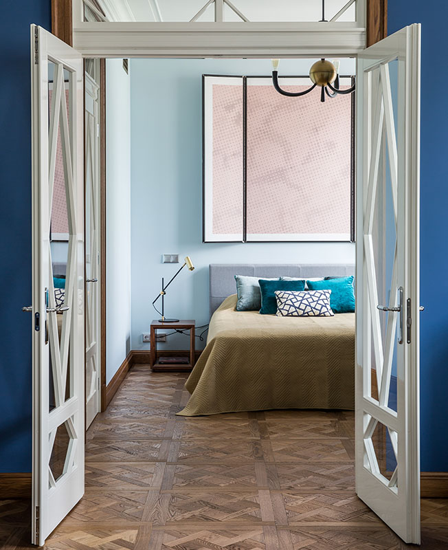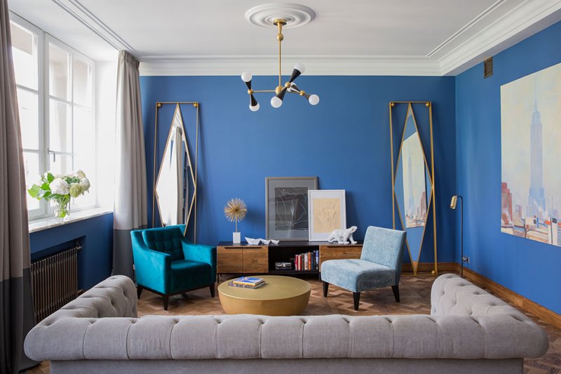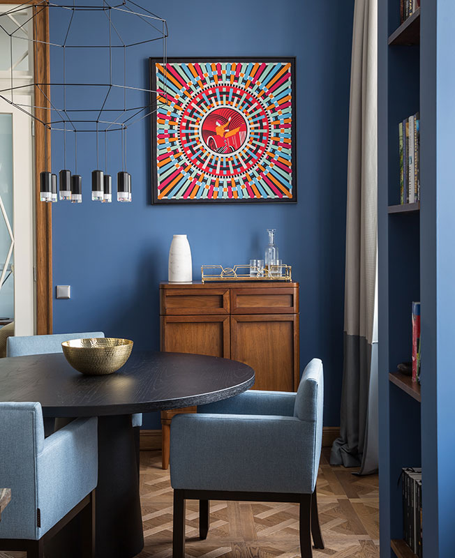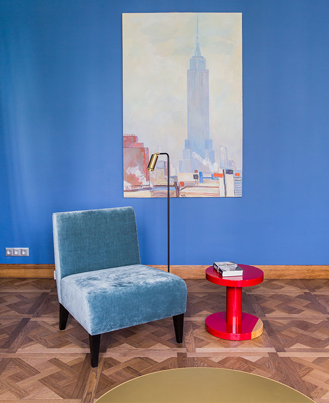 Цветовую палитру подбирали долго и тщательно. Изначально заказчик не хотел ничего яркого и на эксперименты идти не хотел, но в ходе реализации проекта, согласился на самые смелые оттенки: именно тот насыщенный синий, который больше всего был нужен архитекторам.