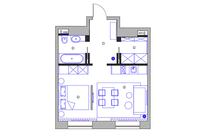 «Несмотря на небольшой размер, маленькие квартиры — чрезвычайно трудоемкие. Ведь на 36 кв. метрах надо реализовать те же задачи, что и в 100-метровом проекте, так же продумать жизненный сценарий человека, вместить все необходимое — спланировать санузел, прихожую, хотя бы небольшую гардеробную, найти место для бытовых приборов», — говорит Татьяна Аленина.