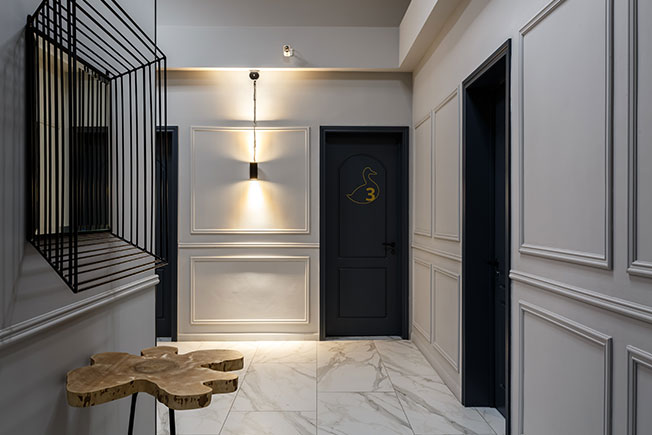В ходе реализации проекта авторы сотрудничали с небольшими мастерскими, большинство предметов делали сами (двухъярусные кровати, изголовья). Привлекли и современных художников — они расписали стены и сделали арт-инсталляции.