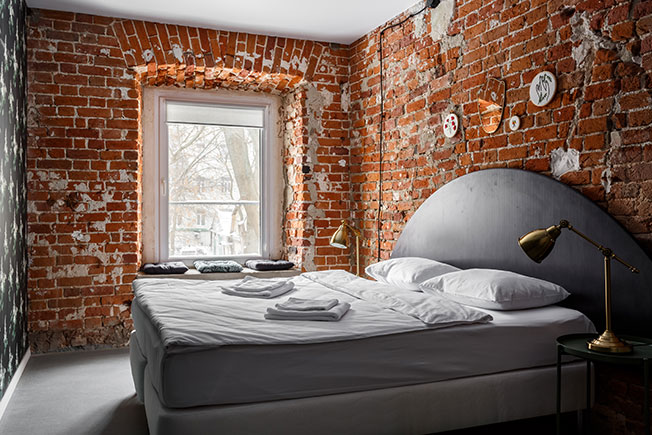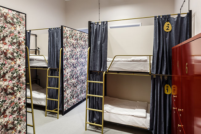 В цоколе оборудовали кухню и зоны отдыха как для больших компаний, так и уединенных бесед. На трех жилых этажах организовали комнаты под самые разные запросы: от места в общей спальне до двухместных и семейных номеров, в общей сложности на 250 гостей. Во дворе планируют проводить выставки, ярмарки и вечеринки.