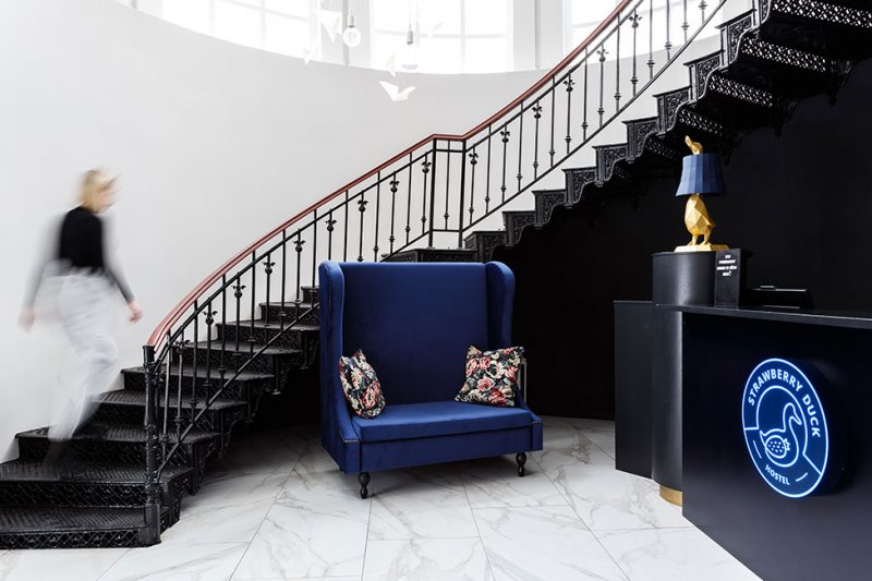 В Москве в районе Чистых прудов открылся хостел Strawberry Duck с разными вариантами размещения. Интерьерами занималась дизайн-мастерская «Все в порядке».