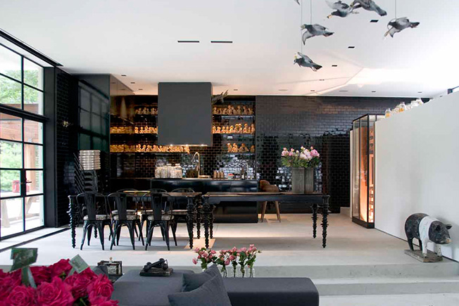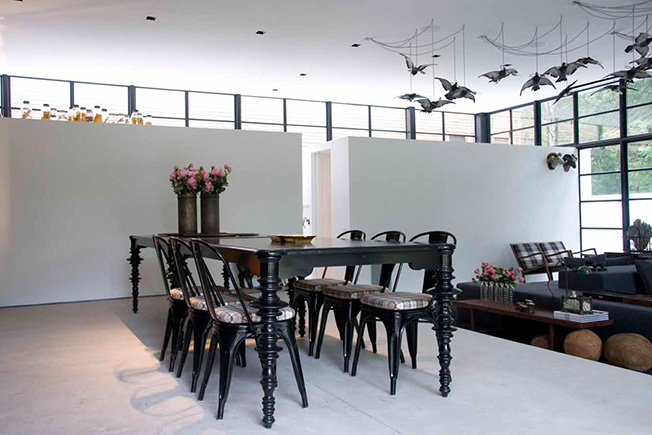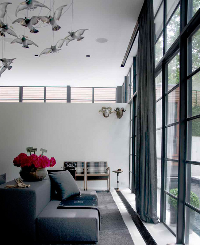«31 голубка» не является ни загородным поместьем, ни городским домом, а скорее объединяет обе идеи. От ландшафтного дизайна до мебели все было изготавлено здесь на заказ и в соответствии с моим стилем жизни. Частные пространства — это спальные помещения. Две главные спальни действуют соседствуют с двумя гостевыми спальнями, расположенными между ними.