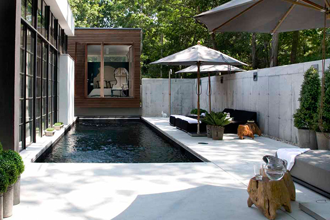 Эта резиденция под названием «31 голубка» расположена в Хэмптонсе, примерно в 90 минутах от Нью-Йорка. Дом с 4 спальнями с видом на пруд стоит в небольшой рощице. Рассказывает автор интерьеров и хозяин дизайнер Пол Тейс: