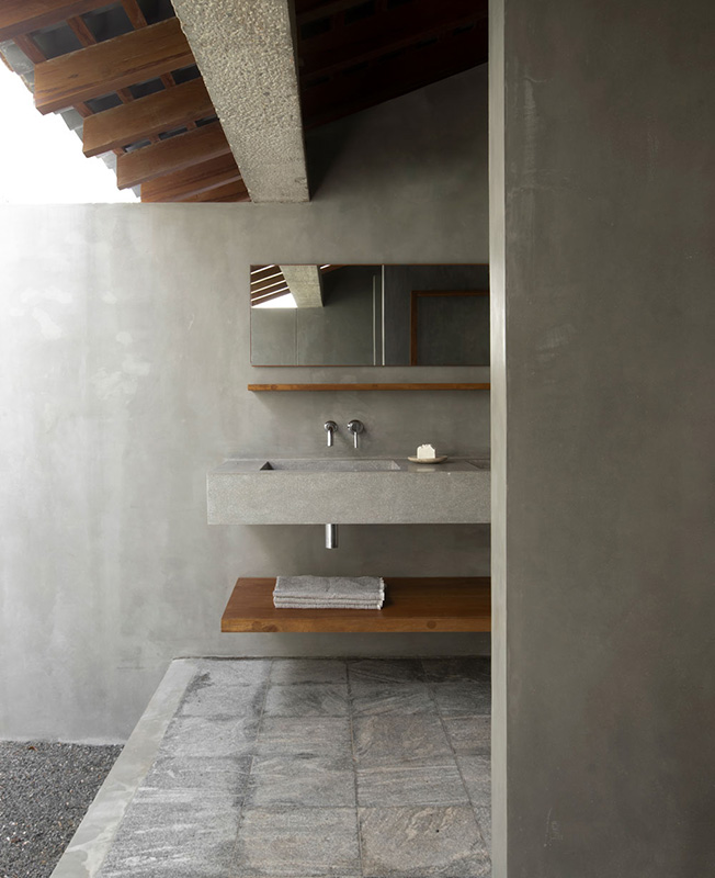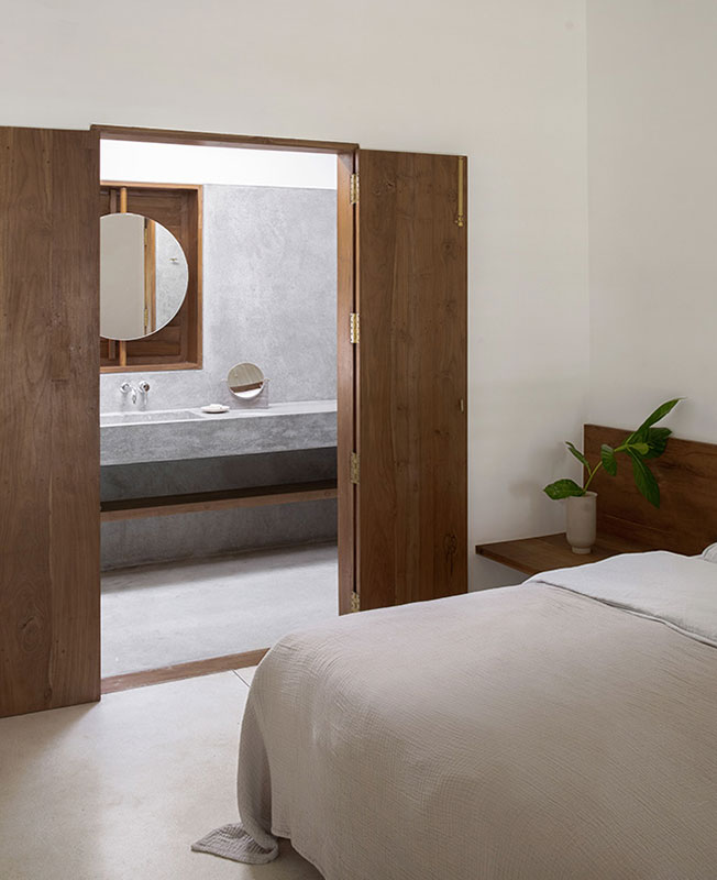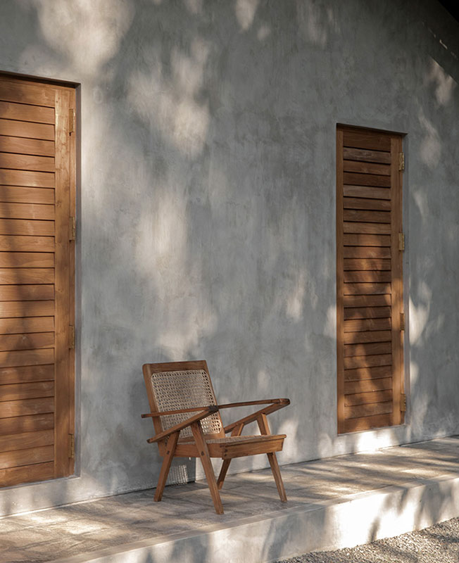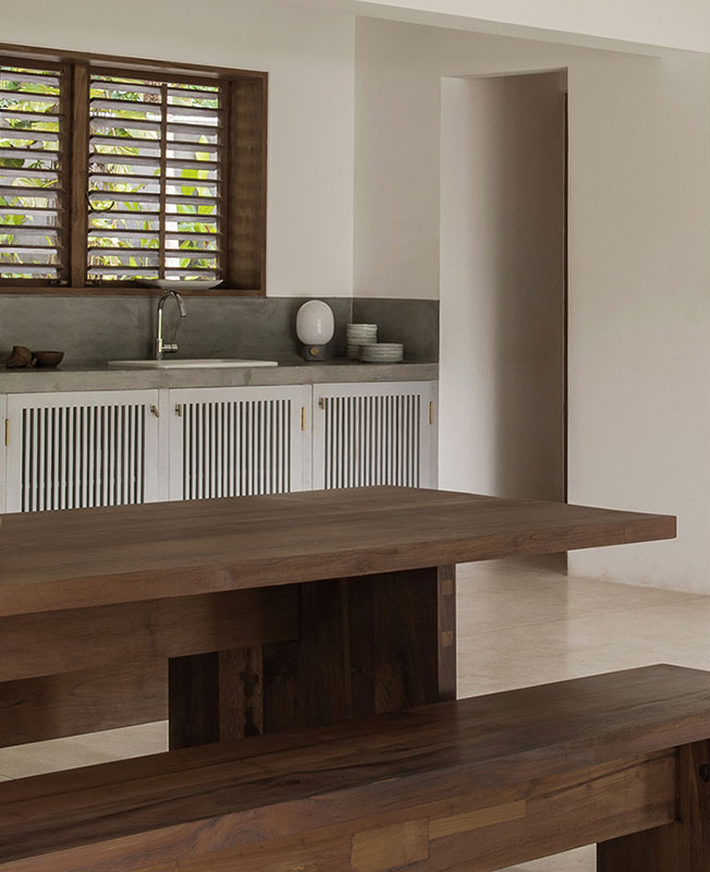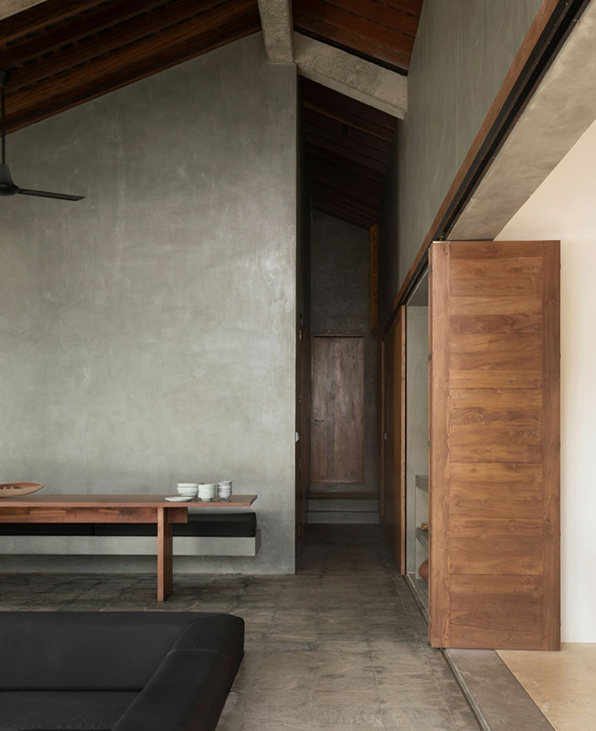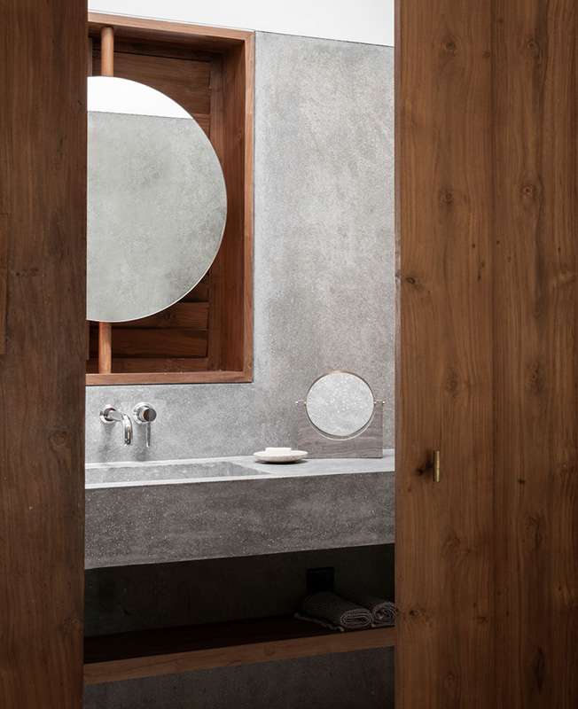 Основная проблема этого места — соль. В береговых ветрах с Индийского океана содержится много морской соли, которая может быть довольно сложным фактором для материалов. Для проекта были выбраны устойчивые к ней бетон, терраццо, терракота и промасленный тик.