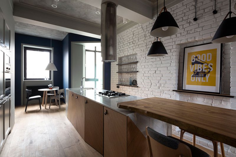 «Мы хотели отразить в интерьере возраст здания, видели это пространство в спокойном минималистичном стиле. Несмотря на то, что заказчик любит лофт, нам удалось прийти к компромиссу использовав разные стилистики и мебель».
