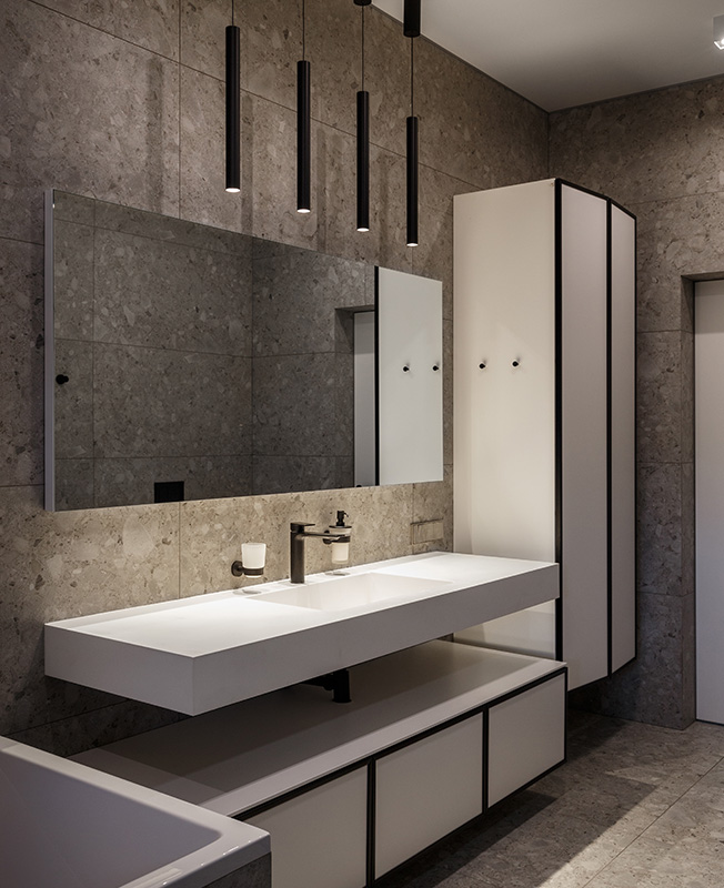 Детская зона включает спальню, игровую и свою ванную комнату. В трех санузлах, которые созданы в доме, использовано оснащение от Antoniolupi, Catalano, Hansgrohe, Tremme, Fima, Hueppe.