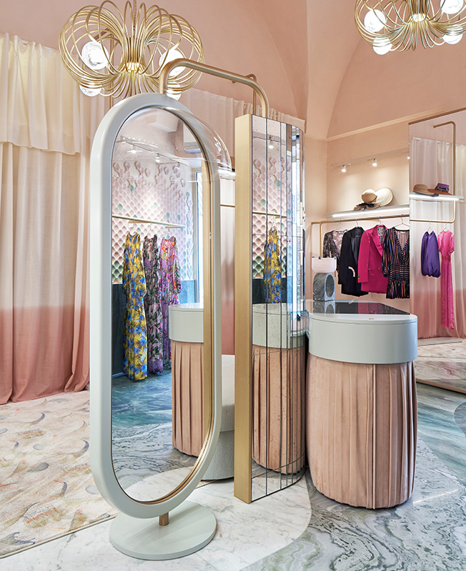 «Я представила себе интимное и женственное место с особой атмосферой, «комнату чудес» для одежды и аксессуаров, приобретенных в результате внимательного поиска. Я хотела, чтобы мой «волшебный шкаф» стал реальностью», — говорит Мариэлла Авино, управляющий директор.