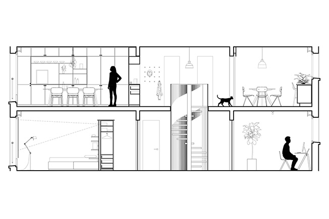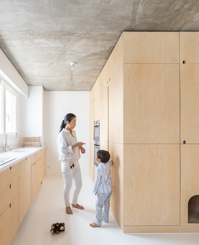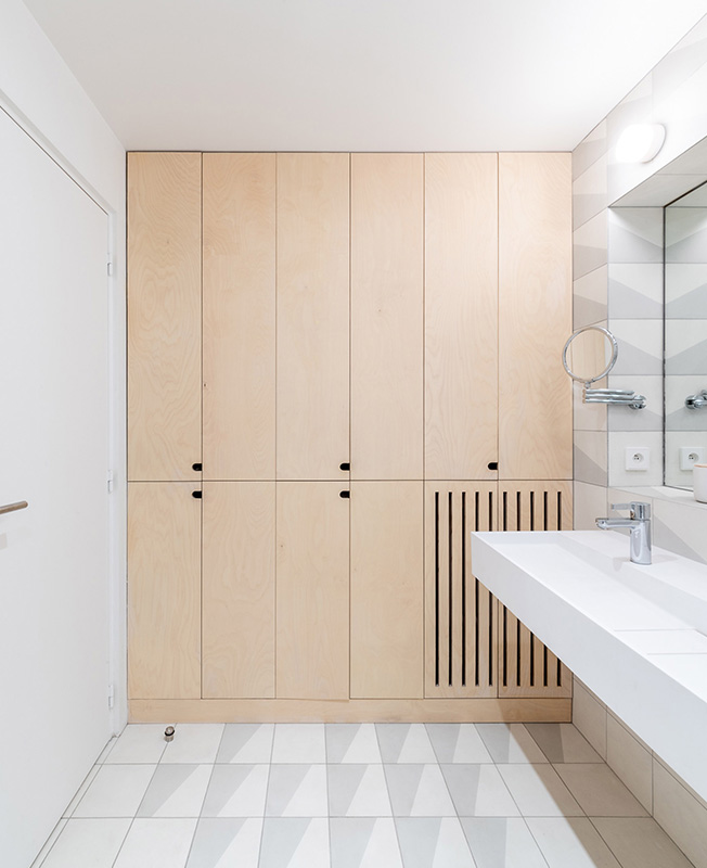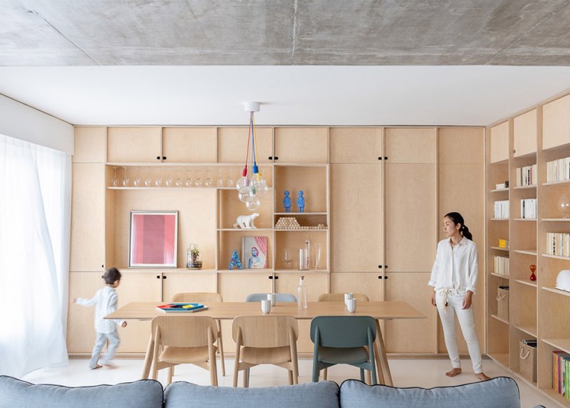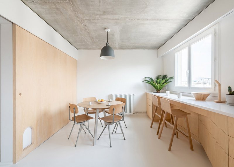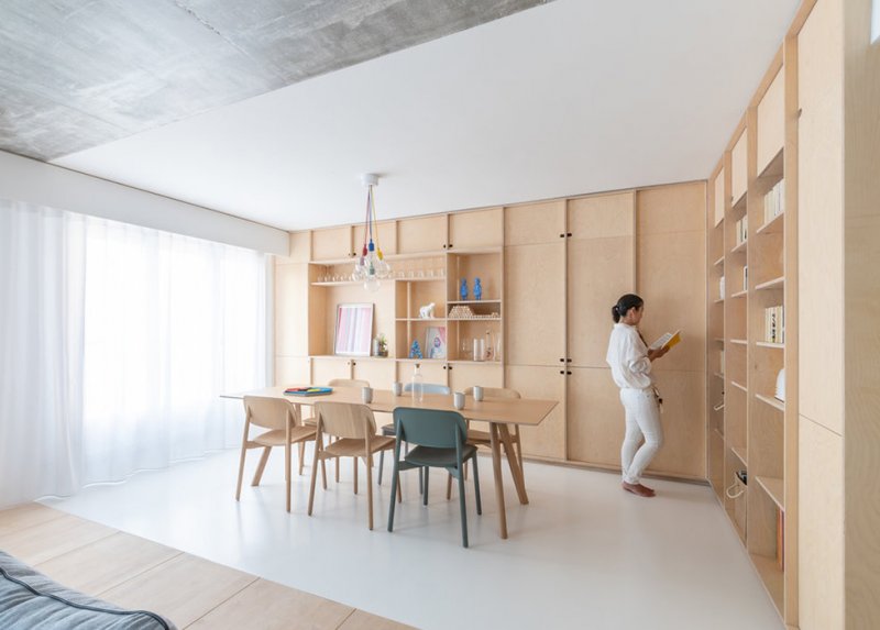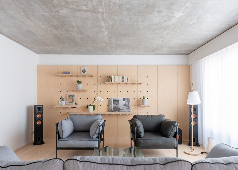 Архитекторы студии Sabo Project обновили дуплекс в пятом округе Парижа. Главный материал интерьера — березовая фанера.