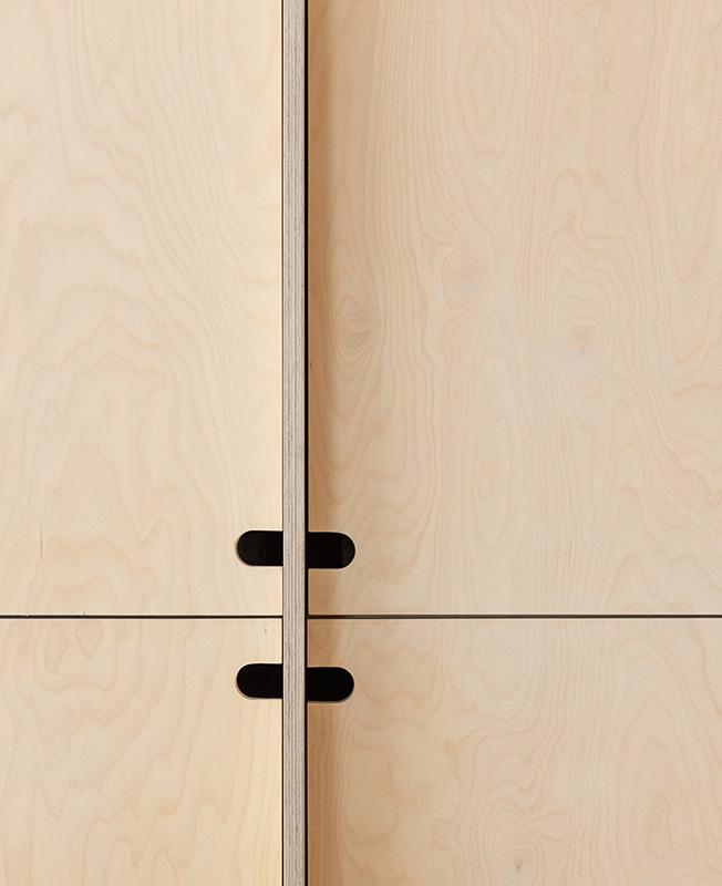 Березовую фанеру очень любили классики модернизма, особенно скандинавы. Заказчикам понравилась идея: использовав недорогой, но знаковый материал, создать уникальный авторский интерьер, бросив вызов показной роскоши. Важно и то, что повсеместное присутствие фанеры способствует цельности проекта.