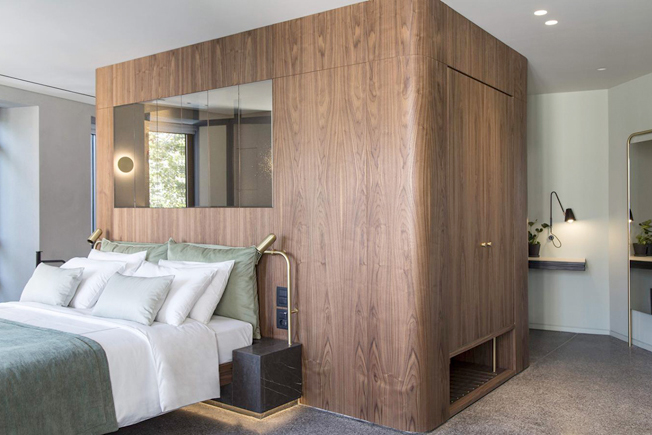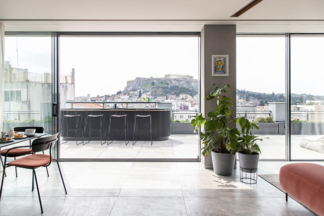 Отель Perianth по проекту греческой команды K-Studio расположен в здании 1930-х годов в Афинах. Удачное расположение в стороне от самых шумных туристических троп позволит легко добраться до достопримечательностей. В 38 номерах — палитра приглушенных, словно выцветших от времени тонов, терраццо, созданная на заказ мебель, мраморные детали и акценты из латуни. Из пентхауса открывается вид на Акрополь и холм Ликабеттус, а также небольшой бассейн и джакузи. На территории открыт Zen Center и ресторан Il Baretto. • От 221 евро за ночь.