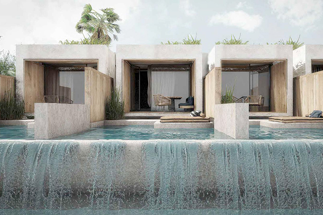 Olea all suite — современый и минималистичный отель на острове Закинф, спроектированный студией Block722. Расположенный в окружении зелени и прозрачных лагун, он впечатляет искусственным озером глубиной 4 метра, вокруг которого обустроены 93 люкса. Сады с многовековыми деревьями, тенистые перегородки и плетеные кресла располагают к отдыху. В отеле работает оздоровительный центр с павильоном йоги, тренажерным залом и спа-центром. К услугам гостей бар и три ресторана с блюдами греческой, средиземноморской и японской кухни. • От 195 евро за ночь.
