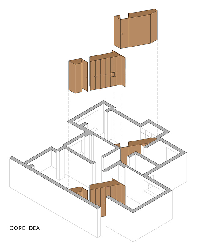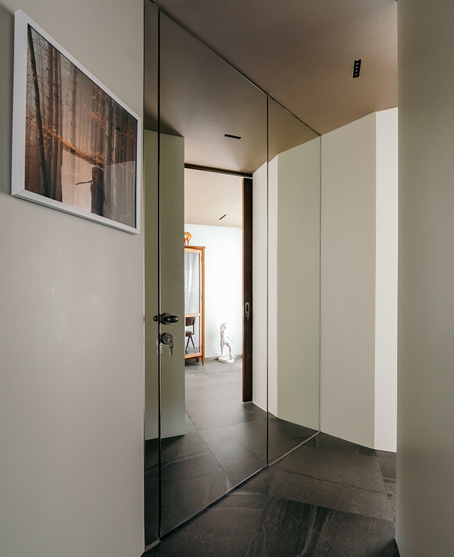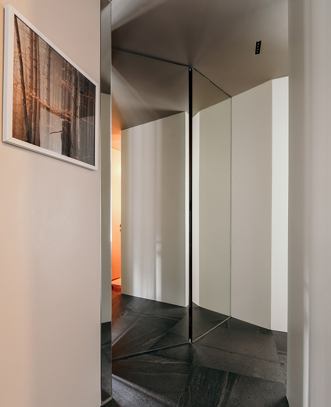 Клиент оказал нам полное доверие, и это стало решающим фактором, почему мы пришли к идее «параллельного мира» и вращательной симметрии в столь компактном пространстве. Хотя мы не можем свободно перемещаться по параллельному миру, но у нас есть возможность наблюдать его.