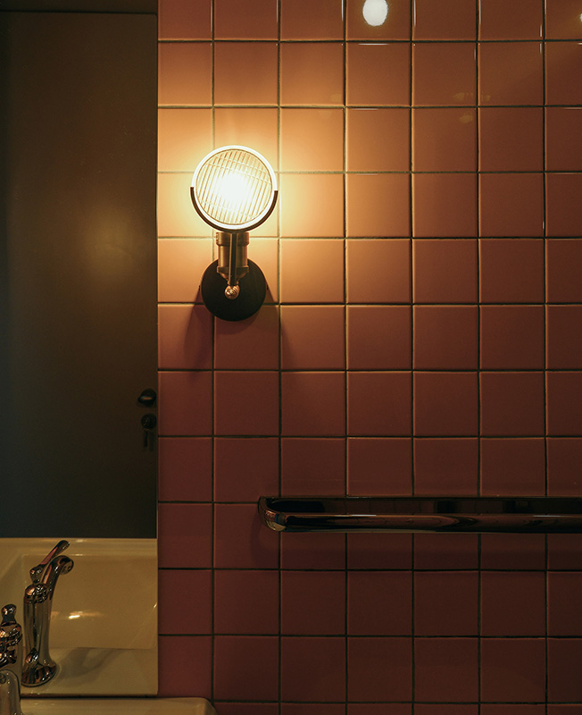 Другую подобную систему «шкафы + зеркала» мы разместили в конце корридора, превратив его его из тесного тупика в красивое cветлое место с перспективой. Выходящую в коридор ванную отделали оранжевой плиткой. Когда оранжевый свет проникает в коридор, то где где бы вы ни находились, вас манит это теплое яркое пятно».