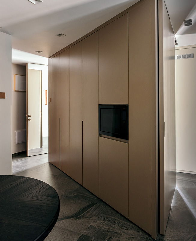 «Клиент просил создать уникальное жилье, однако эта уникальность не должна препятствовать комфортной жизни семьи из трех человек. Нам предстояло улучшить качество жизни в границах тесных комнат, — рассказывает автор проекта.