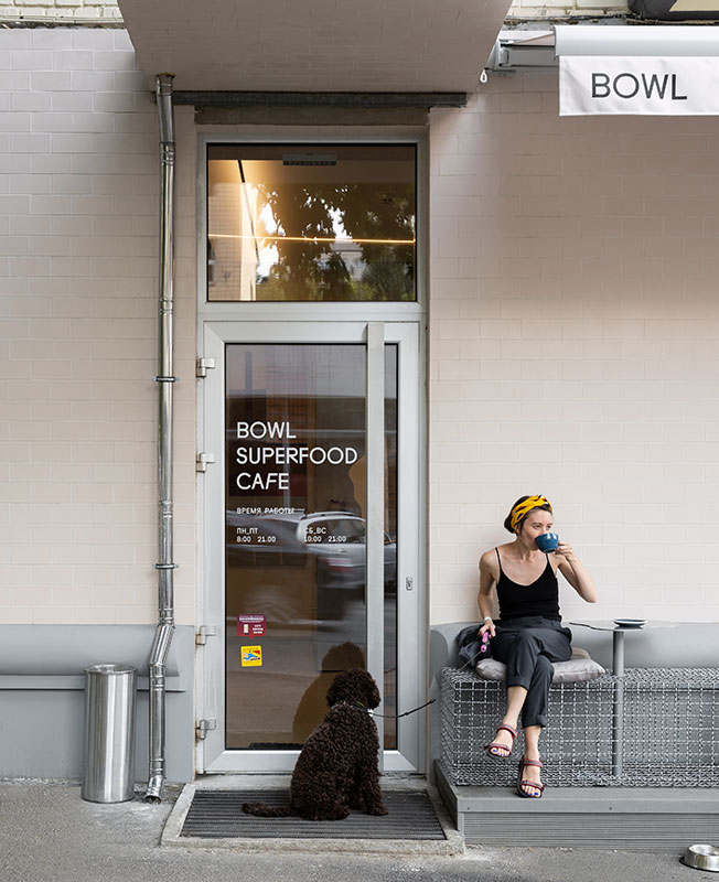 Бюро AKZ Architectura превратило типовую квартиру в лаконичное кафе здорового питания Bowl. Бывшее жилье 58 кв. метров расположено в доме 1930-х годов постройки на первом этаже. Архитекторы объединили концепцию ультрасовременного минималистичного интерьера с аллюзиями на советскую эпоху.