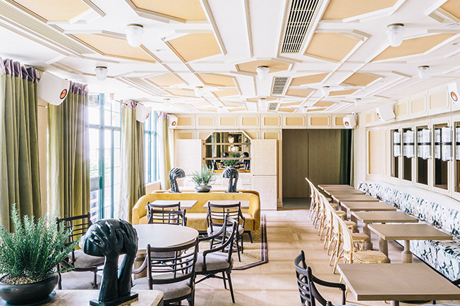 Шеф-повар Жюльен Руайер — обладатель титула «лучший шеф Азии», занимает 18 место в мировом рейтинге топ-50. Возвращаясь к своим корням и воспоминаниям о детстве, он воссоздает ряд классических блюд, но трактует их на современный лад. Посетители могут рассчитывать на хорошую французскую кухню. Винная карта — квинтэссенция мастерски отобранной французской классики, включает образцы из погребов других винодельческих стран.