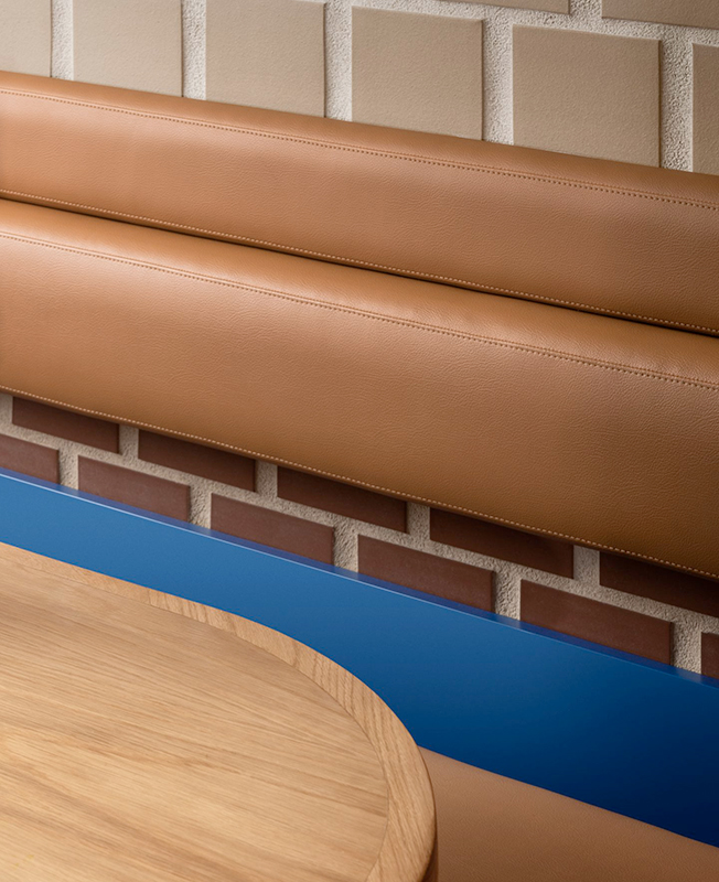 Палитра и материалы, навеянные обликом бывшей электростанции, связывают два города, напоминая обо всем, что дизайнеры так любят в Испании. Терракотовый цвет кирпичных дымоходов перекликается не только с плиткой на стенах закусочной в Ванкувере, но и с оттенком коричневых мраморных столешниц и кожаных сидений.