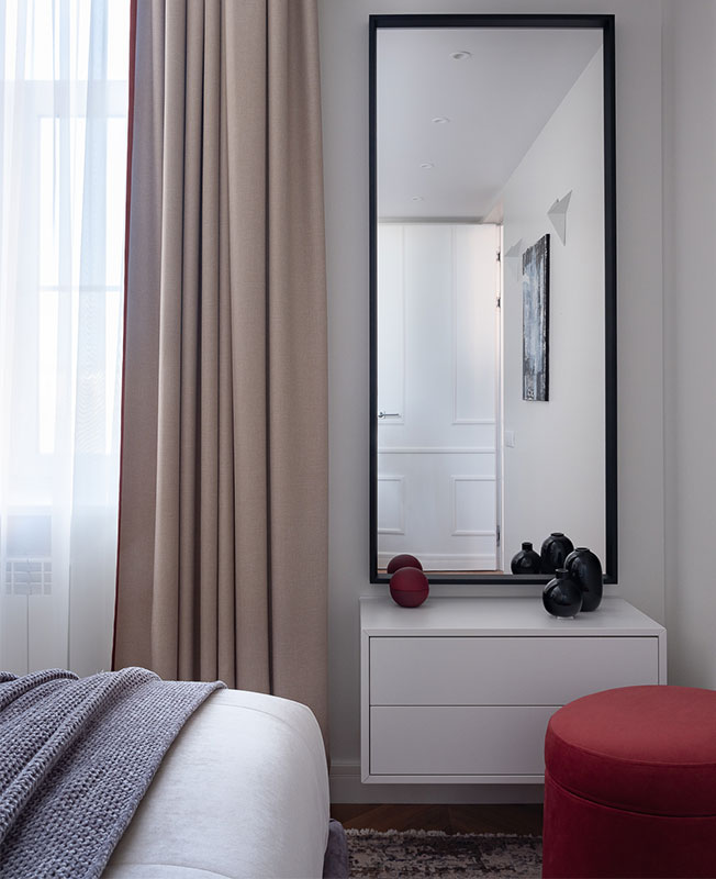 Однако появилась в интерьере и парочка предметов европейских марок — обеденная группа и журнальные столики Calligaris, тумбочка Componibili. Знаменитому шедевру Анны Кастелли Ферриери, которая вместе с мужем основала компанию Kartell, несколько лет назад исполнилось 50 лет. Объект стал первым модульным предметом мебели из передового для своего времени прочного АBС-пластика. Практичный объект с привлекательным дизайном является экспонатом постоянных коллекции музеев по всему миру.