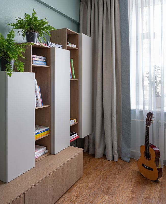 Главными пожеланиями заказчиков стали изолированные комнаты всем членам семьи, комфортная обеденная зона и достаточно мест для хранения. В результате тщательной проработки новой планировки Наталья сохранила прежнее количество комнат, но полностью переосмыслила пространство проходного коридора.