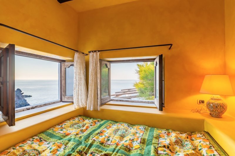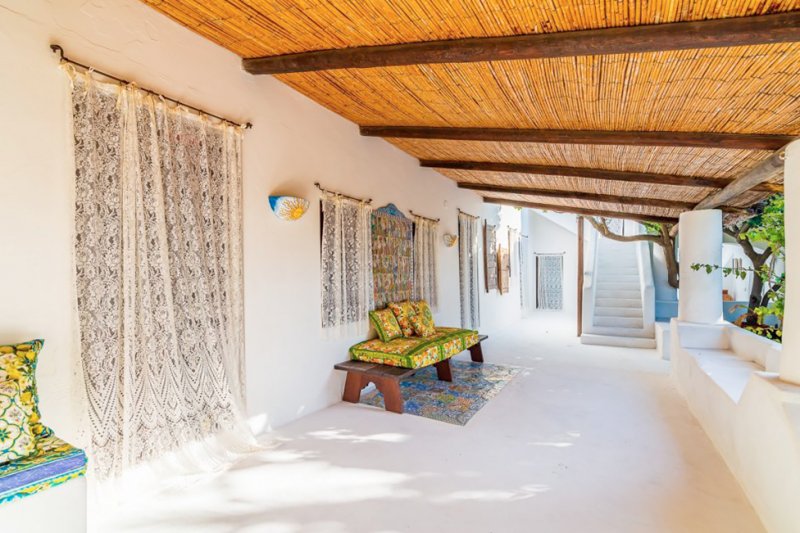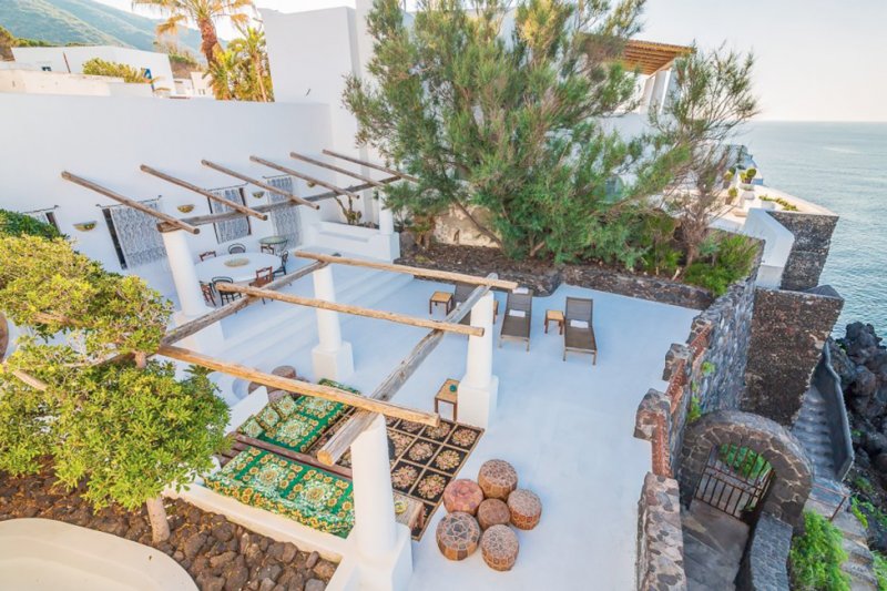Дизайнеры Доменико Дольче и Стефано Габбана владеют здесь недвижимостью с 1990-х годов. Индивидуальность хозяева проявили в оформлении внутреннего пространства. Семь спален наполнены предметами, изготовленными местными ремесленниками, и текстилем D&G, с богатой палитрой в каждой комнате. Ванные комнаты облицованы лавовым камнем.