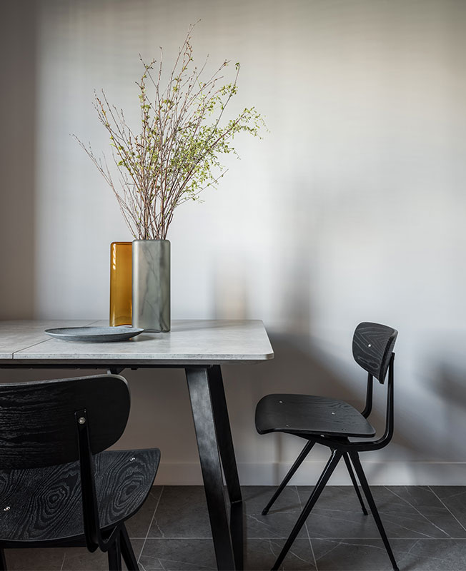 Из пожеланий заказчики высказали ощущение воздуха, простора, минимум мебели и много систем хранения. Из стилистических предпочтений — японский минимализм, натуральные материалы в духе эстетики ваби-саби с акцентом на ощущение подлинности.