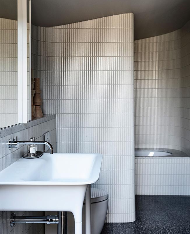 Несмотря на выразительный подход к дизайну, функциональные аспекты не были отстранены на второй план. Внутренний двор отвечает обычным требованиям, обеспечивая охлаждение летом. «Принципиально изогнутая стена скрывает многослойный и детально проработанный интерьер. Клиенты хотели, чтобы это жилье было доставлено выразительным, привлекательным и запоминающимся».