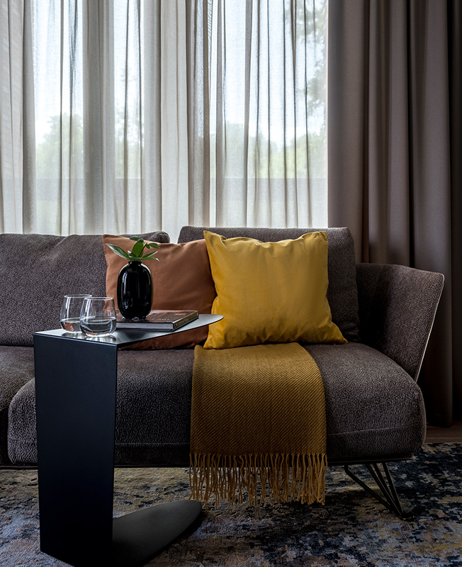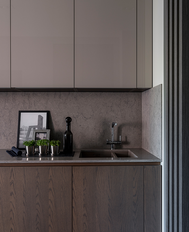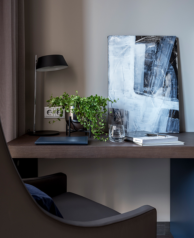 Хозяйка дома — в прошлом профессиональная балерина, в интерьере предпочитает нейтральные оттенки. Рабочие будни главы семьи наполнены встречами и переговорами, ему нужен был кабинет, в котором можно отдохнуть от суеты и настроиться на активную работу.