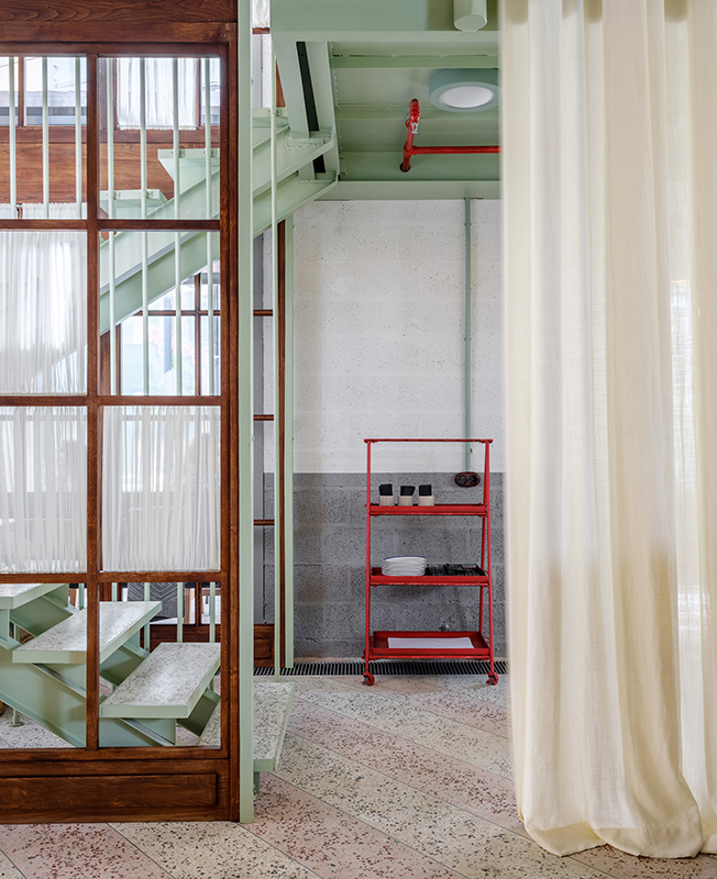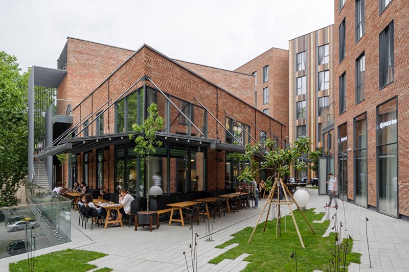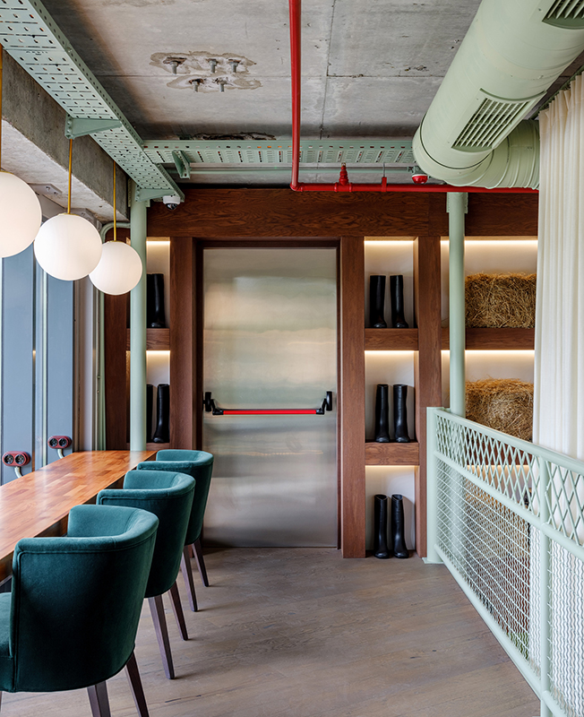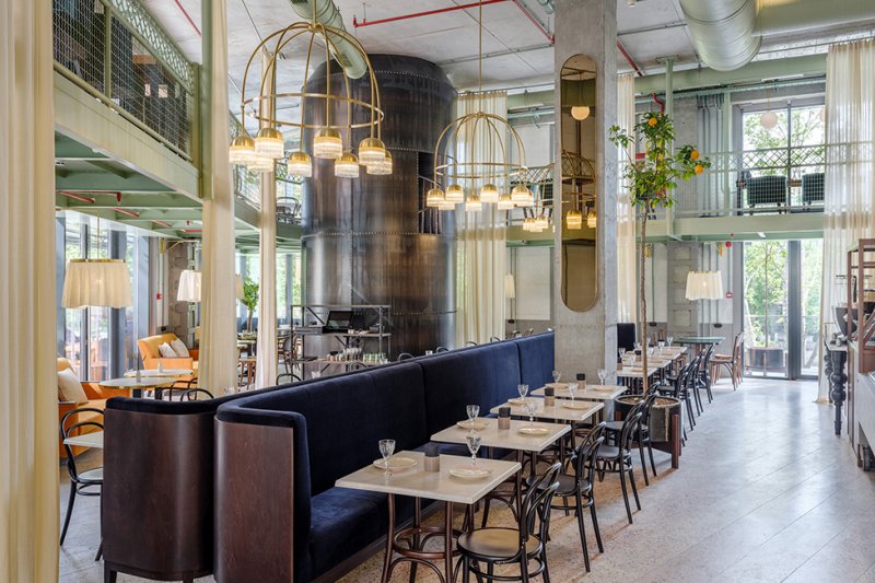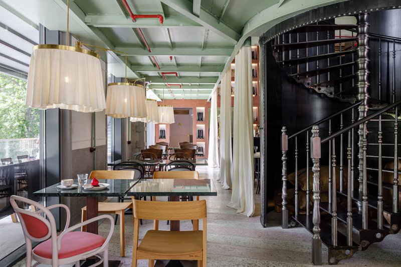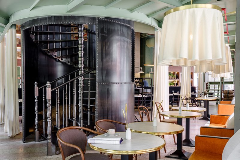 Концепция интерьера отсылает к историческим районам XIX века, таким как Плеханови: с их уникальными двориками, винтовыми лестницами, балконами и другими типичными элементами архитектуры. Воспоминания о Советском Союзе также играют свою роль — некоторые элементы были взяты с близлежащего хлебозавода, построенного в 1950-х годах.