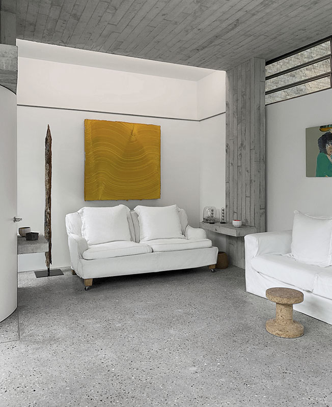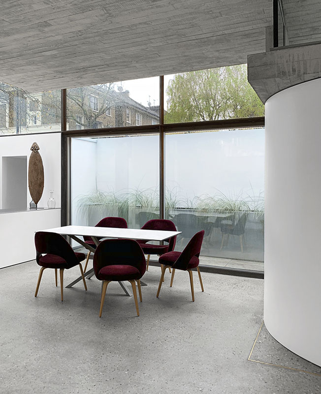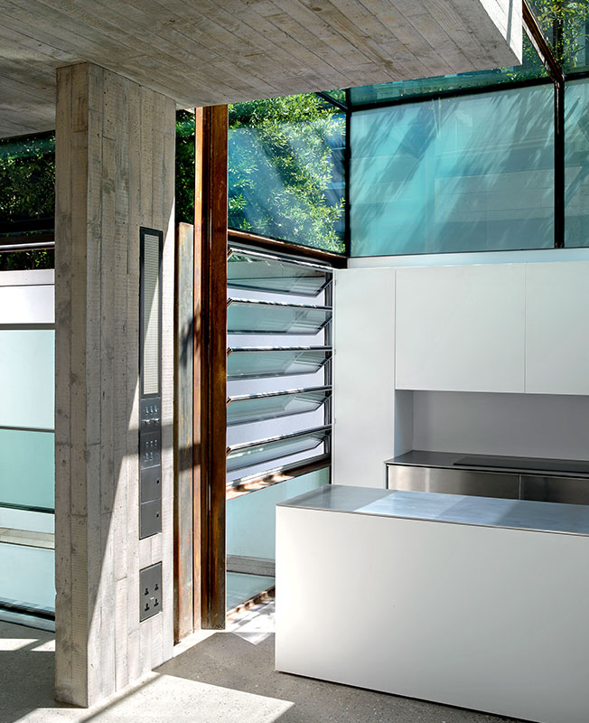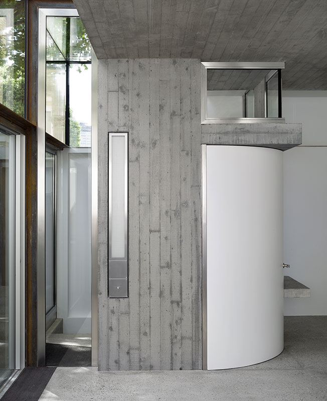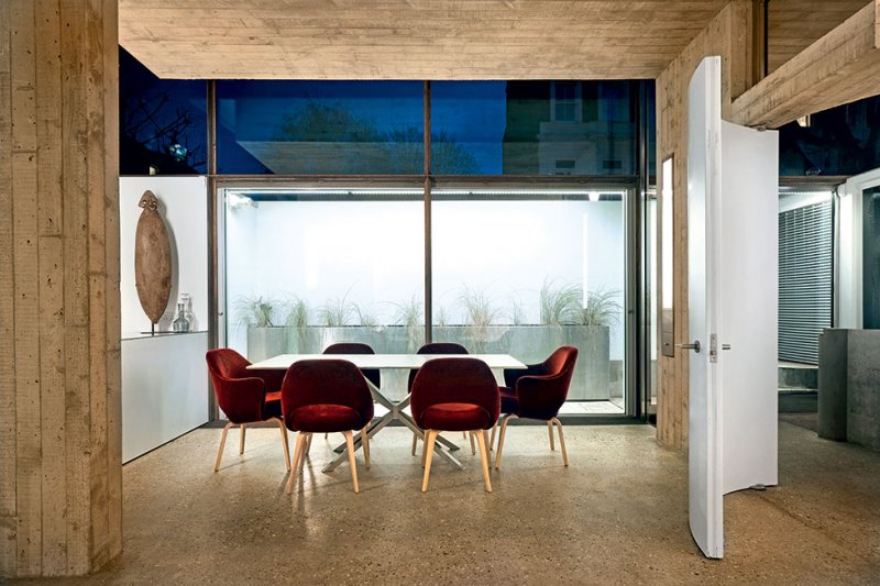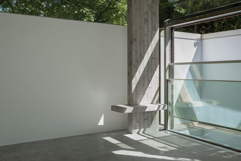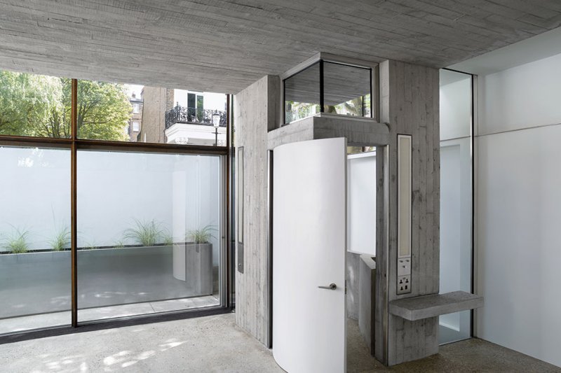 Строительство в Лондоне, тем более под землей, стоит дорого, поэтому выбор методики обусловлен еще и экономией. Конструкция дома простая, разборная, каркас выполнен из бетона с шероховатой фактурой, со следами опалубки. «Мне нравится честность и мощь beton brut, не зря его любили Ле Корбюзье, Марсель Бройер и мой кумир архитектор Мендес да Роша».