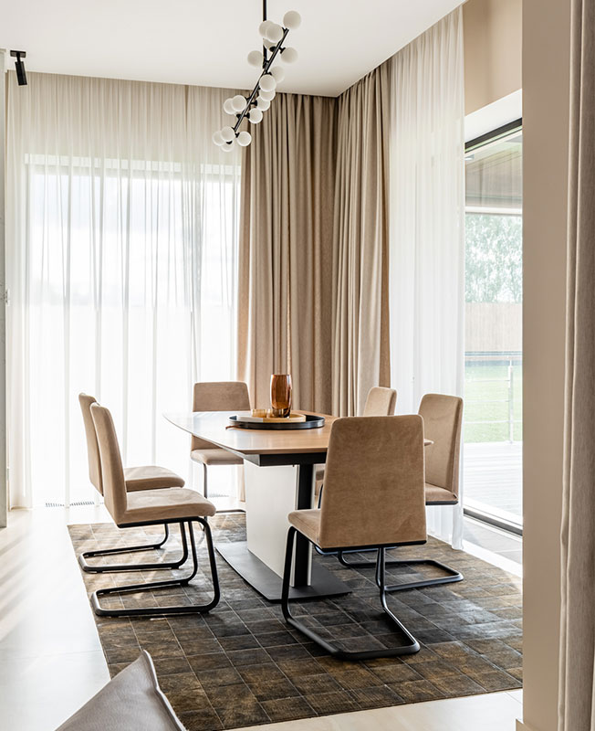 С заказчиками дизайнер работала уже во второй раз. Ранее Елена оформила для семьи квартиру в центре Москвы. При обсуждении концепции обе стороны пришли к выводу, что работа и вся суета должны остаться в городе, а на природе будут царить спокойствие и умиротворение. В доме много свободного открытого пространства, что располагает к отдыху — физическому, моральному, визуальному.