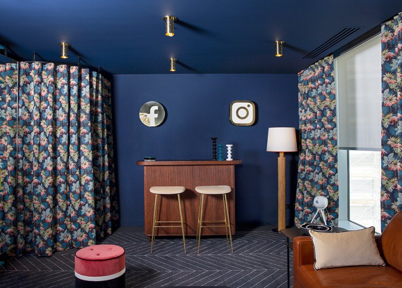 Дом гигантской соцсети стоит в самом сердце второго округа Парижа. В этом высококлассном месте мы находим изысканный прием и уютную атмосферу. Обстановку Сара Лавуан создавала так, чтобы ее интерьер стал жилым пространством для посетителей офиса и все гости чувствовали бы себя как дома. Бар, книжный шкаф, большой удобный кожаный диван и плотные шторы создают комфортный антураж.