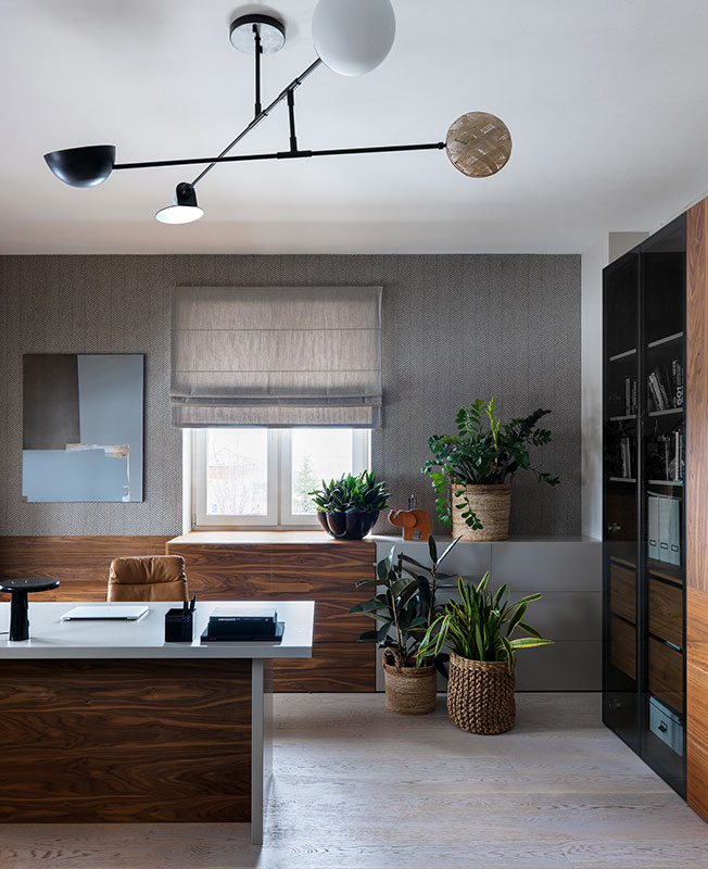 Особым украшением интерьера стали живые растения. Над обеденным столом висит светильник Palma, получивший премию German Design Award 2018. Его автор, дизайнер Антони Арола, считает, что Palma — «это ландшафтный проект, который со временем изменится как светящийся висячий сад».