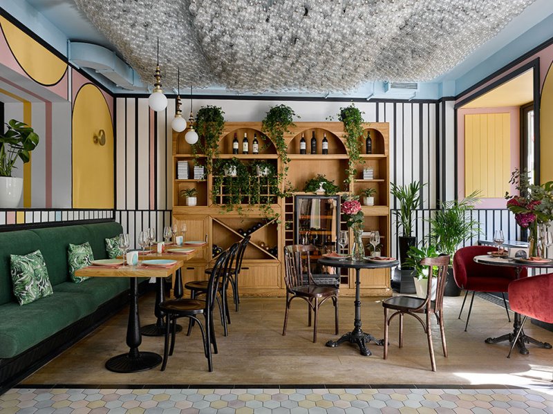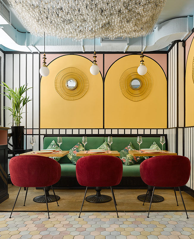 Екатерина Владимирова, студия Interior Point создала яркий жизнерадостный интерьер в духе парижских кафе в центре Москвы.